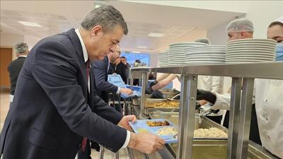 yemek sırasına giren Başkan Yarka ve Rektör Alkış, daha sonra öğrencilerle