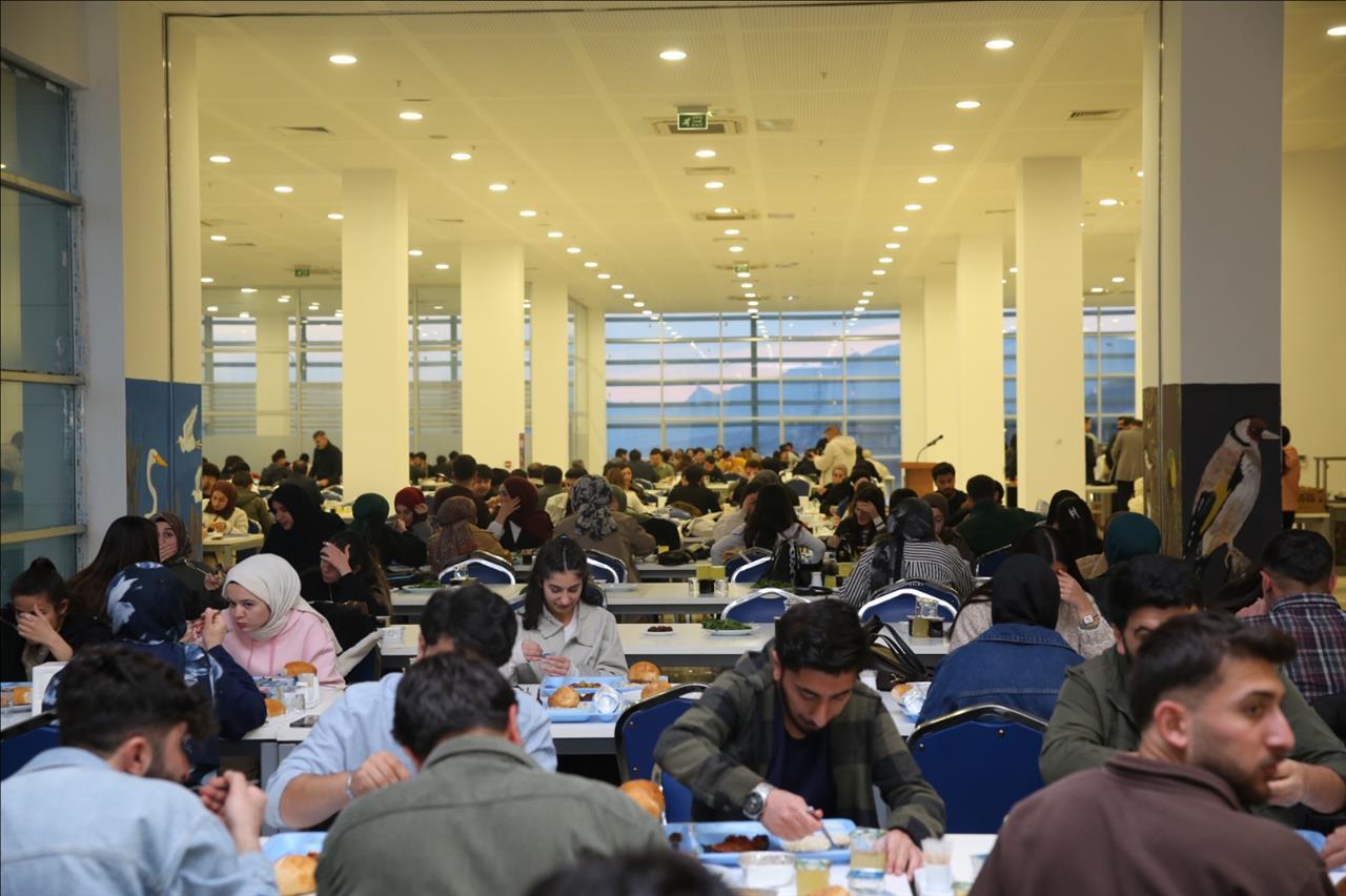 Üniversitemiz Mehmet Emin Acar Kampüsü’ndeki Merkezi Yemekhane’de öğrencilerimizle
